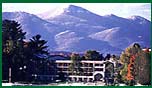 outdoor veranda provides sweeping views of the High Peaks' sierra,